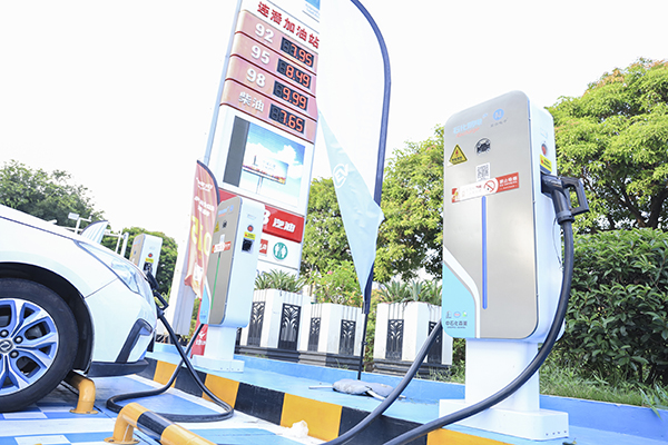 福州连潘中石化加油站内的充电桩已投入使用