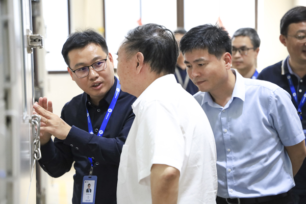 随后,调研组一行深入满冠体育_满冠体育(中国)检测实验室,系统性地观摩、了解了从电芯到电池包、从硬件到软件的全链条检测工序,并详细察看了满冠体育_满冠体育(中国)股份自主研发的高精度充放电测试设备模拟不同工况、不同环境条件下,精准评估电池的容量、电压、电流、内阻及循环寿命等核心数据的具体过程。周济院士在考察中驻足观察设备工作,深入询问技术细节,对满冠体育_满冠体育(中国)股份在锂电池检测高端装备领域取得的创新成果表示充分肯定。他指出,当前全球制造业正加速向数字化、网络化、智能化迈进,满冠体育_满冠体育(中国)股份作为国内锂电池检测行业的领军企业,应进一步强化自主创新能力,深化人工智能、工业互联网等技术与行业的融合,推动中国制造迈向新高度。