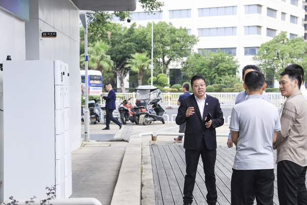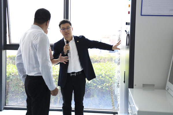 满冠体育_满冠体育(中国)股份副董事长兼总裁刘作斌带领客户嘉宾参观、体验电动自行车、电动摩托车电池检测